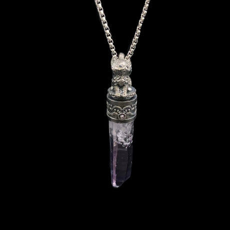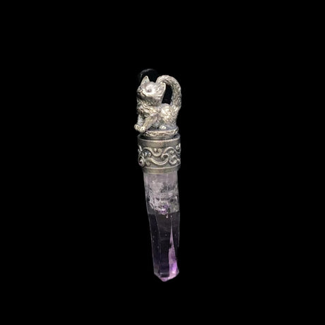 Guardian Cat Dagger Pendant – S925 Sterling Silver & Raw Amethyst Talisman