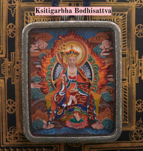 Brass 'Baokan' Manjushri Small Rectangle 3x4cm Color-Painted Tsa-Tsa Shrine Case