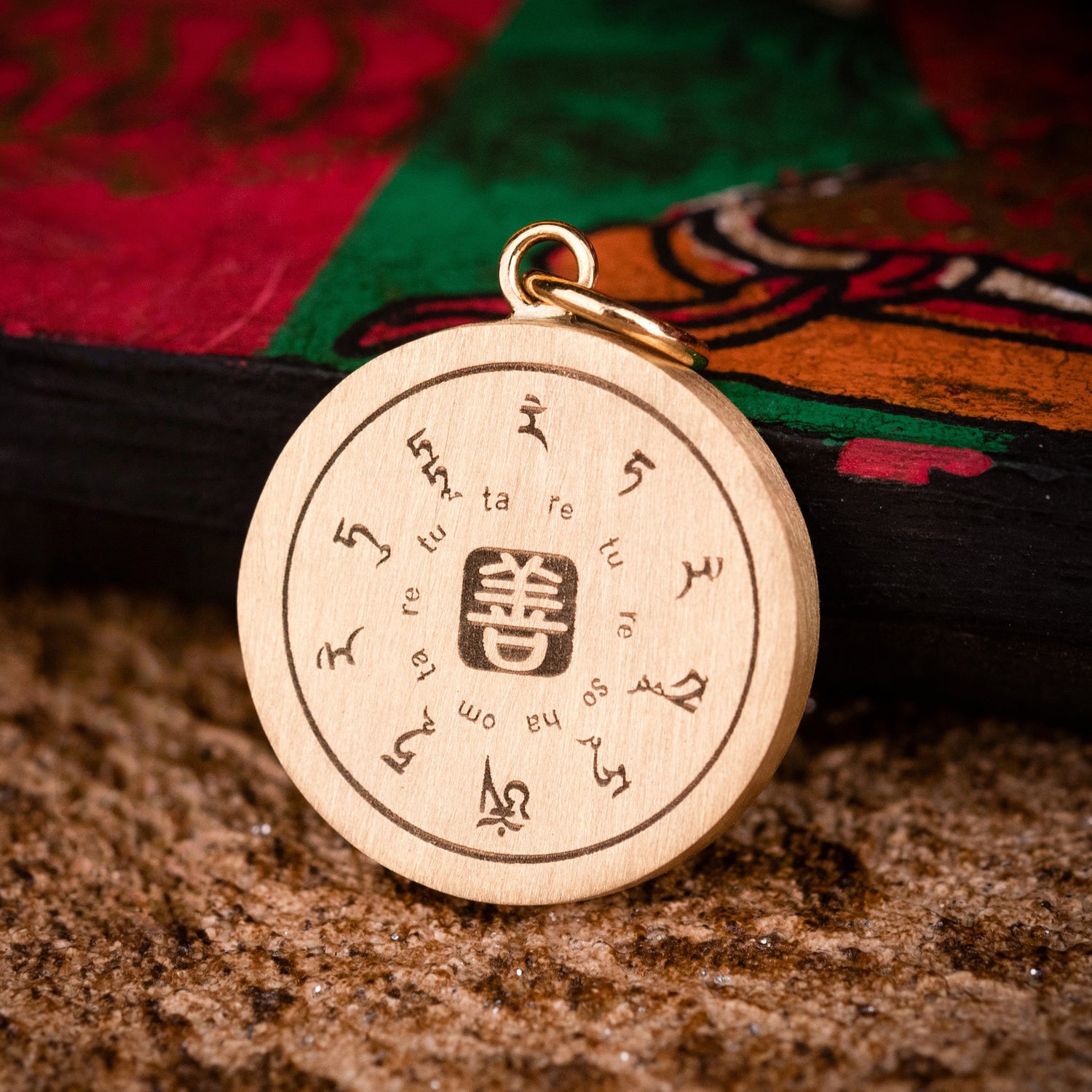 This fingertip Thangka pendant features a circular metal frame as its base, with smooth, clean lines. Topped with a looped clasp, it easily pairs with a cord or chain for wearing.Despite its mini size, the Thangka’s artwork brims with craftsmanship. The artist uses ultra-fine brushstrokes, layering pigments to achieve rich color saturation and seamless transitions. The pattern’s textures remain sharply defined, perfectly showcasing the remarkable skill behind micro-painted Thangkas.