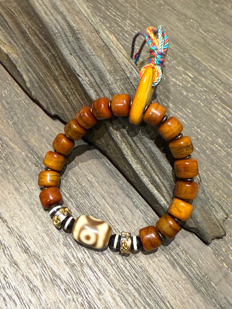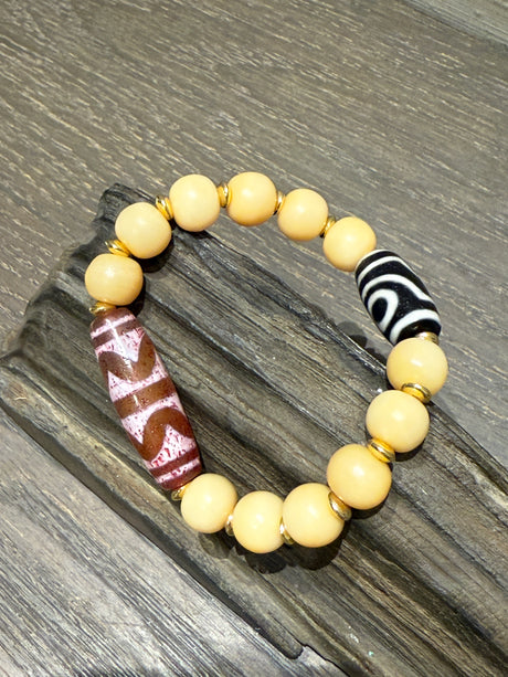 Tibetan - Styled Agate and Yak Bone Bracelet