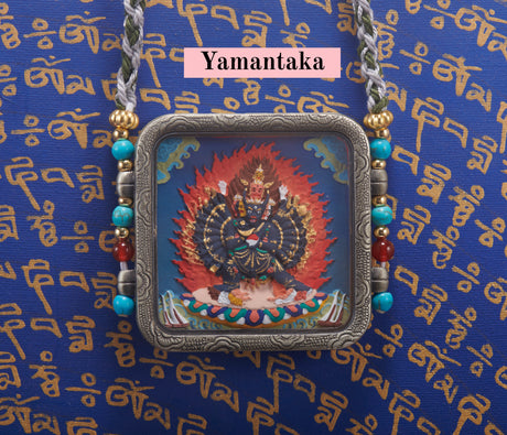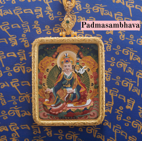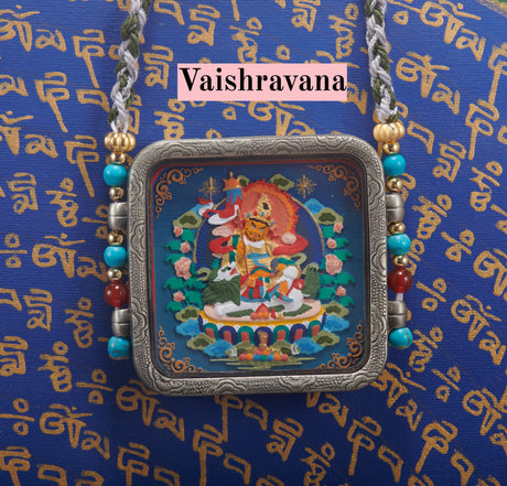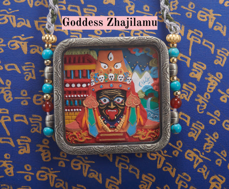 Gold-Toned Tibetan Treasure Scrollwork Tsa-Tsa Thangka Pendant-Goddess Zhajilamu