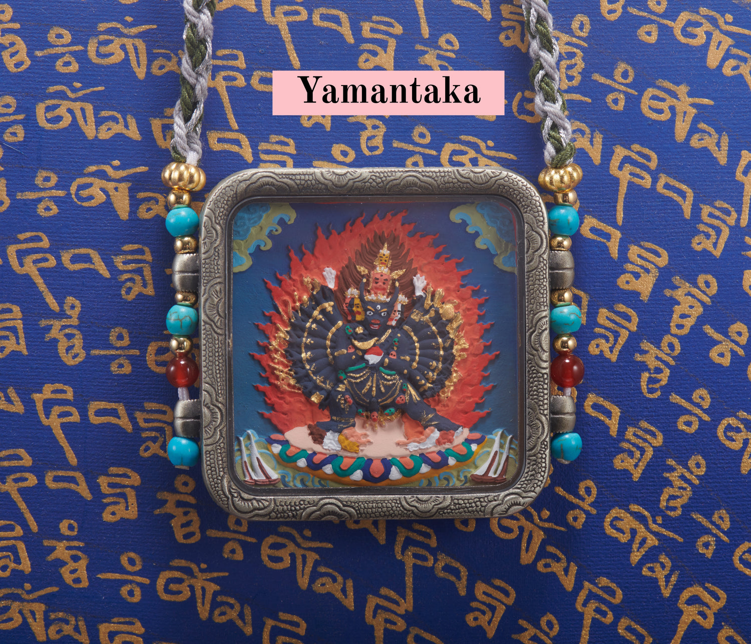 This is an exquisitely crafted Yamantaka thangka pendant. Yamantaka stands as the “annihilator of extreme obstacles,”existing to shatter stubborn karmic barriers that ordinary dharma protectors struggle to breach. Targeting hopeless predicaments— such as business collapse, ancestral karmic entanglements, severe illnesses, and deep-seated obsessions—he crushes the roots of karmic hindrances with thunderous might, guiding practitioners to accumulate merits and wisdom, and fulfill their spiritual and worldly aspirations.