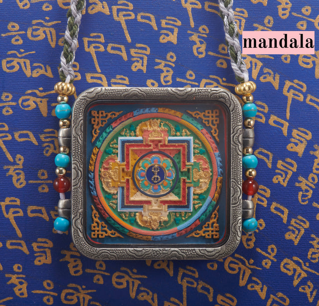 This is an exquisitely crafted mandala thangka pendant. The mandala is a key object of visualization for Tibetan Buddhist practitioners. Through visualizing the mandala, practitioners can purify their minds, dispel karmic obstacles, and accumulate merit. Wearing a mandala thangka helps practitioners maintain mindfulness in daily life, practice diligently, awaken inner wisdom and compassion, advance their spiritual journey, and attain enlightenment and liberation sooner.