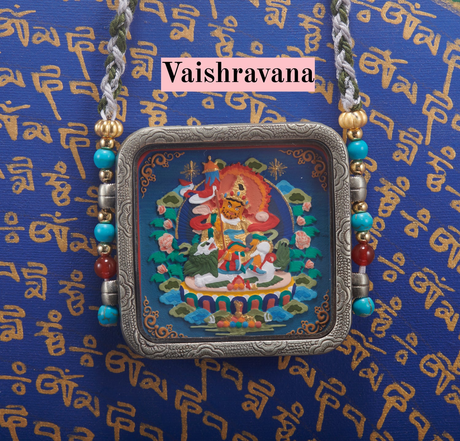 This is an exquisitely crafted Vaishravana thangka pendant. Vaishravana, the chief guardian of wealth in Buddhism, exists to address all facets of wealth - related challenges. He empowers people to unearth profit - generating opportunities in their professional lives, seize lucrative prospects, break through bottlenecks, and ultimately attain the dual fulfillment of financial freedom and spiritual awakening.