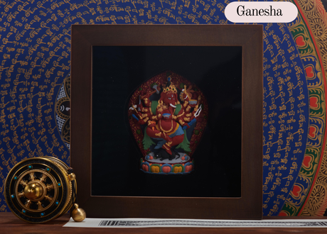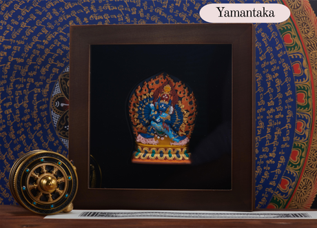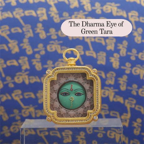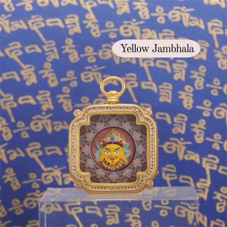 Gold-Toned Tibetan Treasure Scrollwork Tsa-Tsa Thangka Pendant-Goddess Zhajilamu