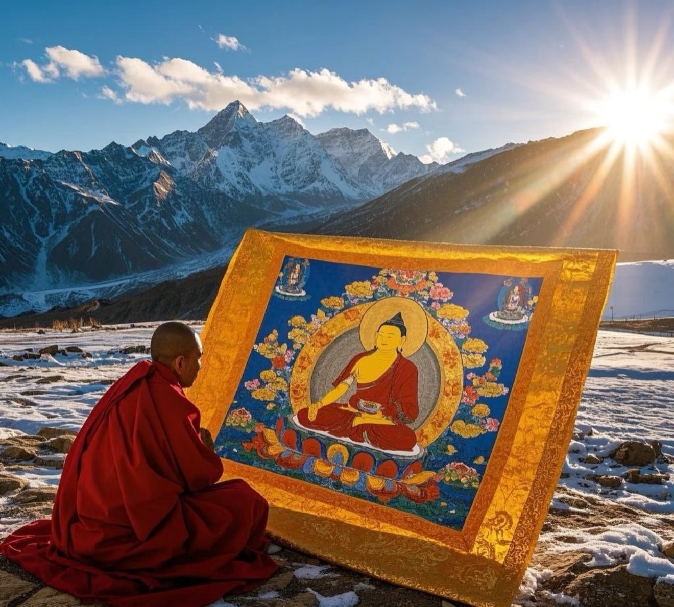 Silver-Gilded Lotus Mantra Bead – Adorned with sacred script, this ornate centerpiece adds protection and a spiritual anchor to the piece.